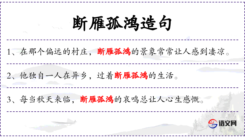 - 状语:独自一人在异乡,断雁孤鸿