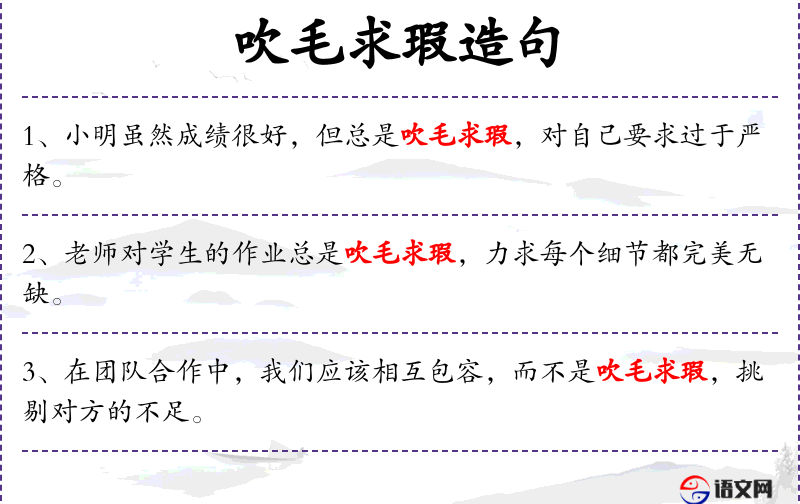 - “吹毛求瑕”是一个成语,反映了人对完美和细节的关注。