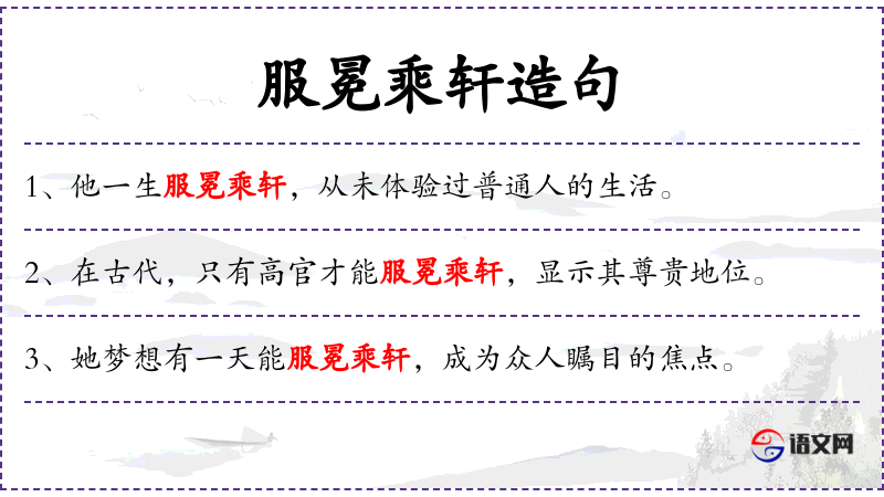 4. 【服冕乘轩】 冕:古代天子、诸侯及达官显宦戴的礼帽;轩:有车厢或帷幔的车。指做官后飞黄腾达。