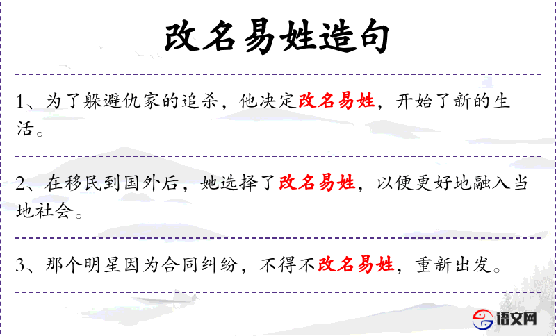- 谓语:改名易姓