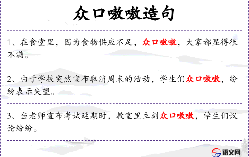- 众口嗷嗷:形容多人同时发出不满的声音。