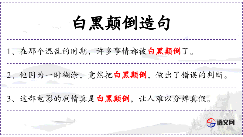 3. 【白黑颠倒】 - 颠倒:错乱。指白黑不分、是非颠倒。