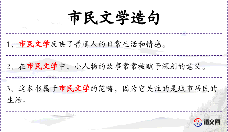 - 市民文学:指以城市居民生活为背景,反映市民生活和情感的文学作品。
