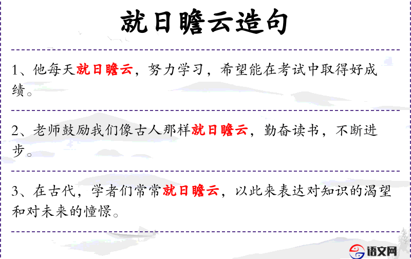 句子:“在古代,学者们常常就日瞻云,以此来表达对知识的渴望和对未来的憧憬。”
