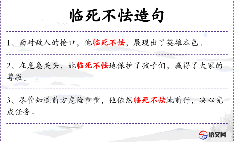 - 状语:在危急关头、临死不怯地