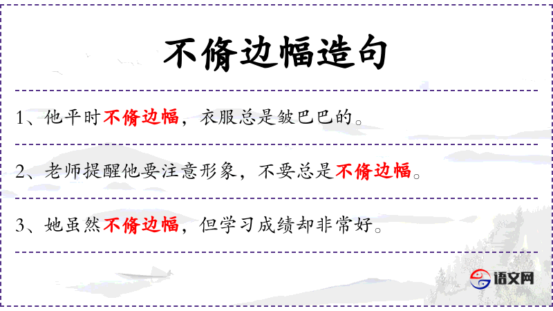 - 不修边幅:成语,形容人不注意仪表和外表的整洁。