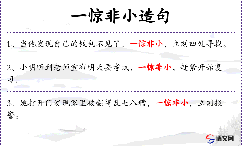 - 相关成语:“一惊非小”是一个成语,形容非常惊讶。