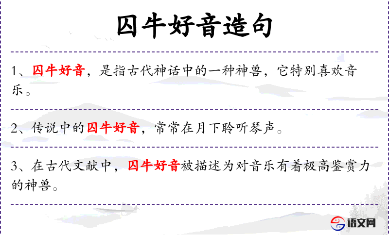 - 句子描述了古代文献中对“囚牛好音”的记载,强调其对音乐的极高鉴赏力。