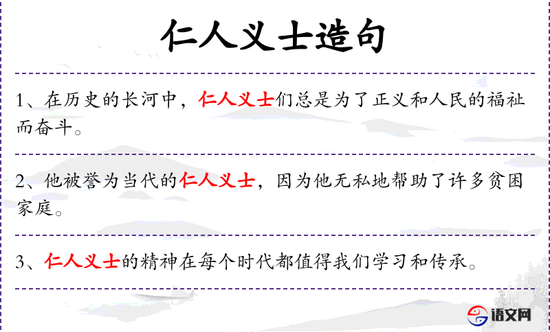 - 仁人义士:指具有高尚品德和正义感的人。