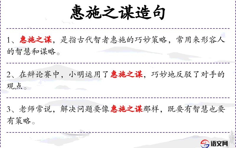 - 惠施之谋:惠施是战国时期的著名辩士和政治家,以其智慧和谋略著称。这个词汇蕴含了古代文化和历史背景。