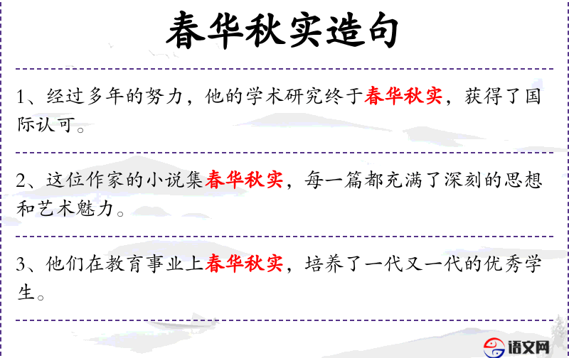 - 春华秋实:这个成语在**文化中常用来比喻事物的成长和发展过程,具有积极向上的文化意义。