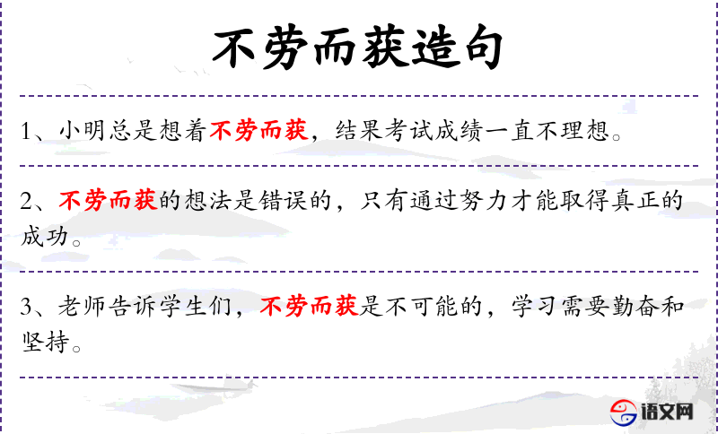 - 同义表达:我们应当对不劳而获的诱惑保持警觉,坚定地遵循自己的努力和原则。