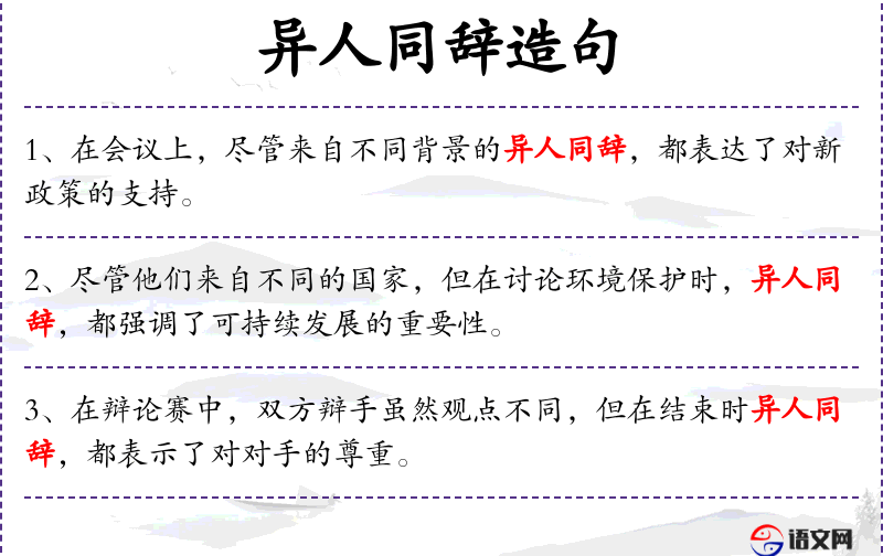 - 异人同辞:指不同的人说出相同的话,这里指不同年龄层的居民都提出了相同的建议。