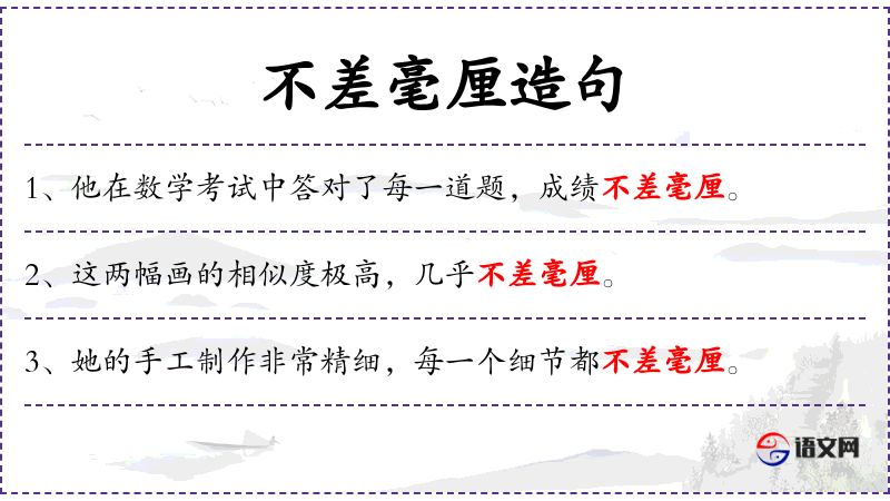 - 不差毫厘:这个成语体现了**文化中对精确和细致的重视。