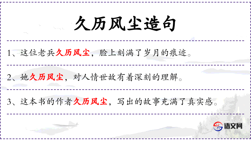 1. 【久历风尘】 经历过很多艰苦的日子。