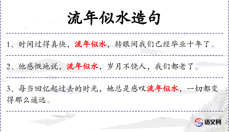 6. 【流年似水】 - 流年:光阴。形容时间一去不复返。