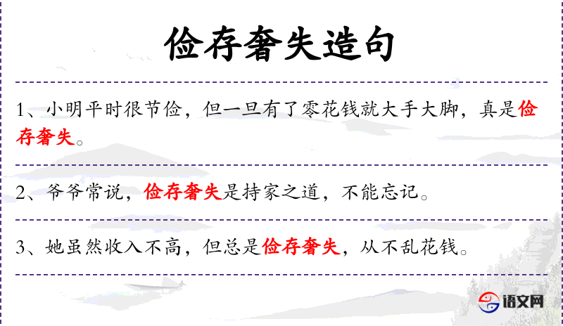 - 俭存奢失:节约储蓄,奢侈浪费。