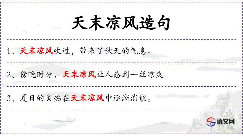 - “随着天末凉风的吹拂,夏日的炎热逐渐消散。”