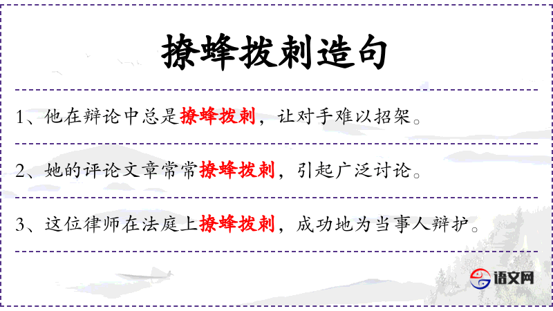 - 撩蜂拨刺:这是一个成语,比喻在辩论中采取尖锐、挑衅的策略,使对方难以应对。
