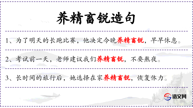 - 文化背景:在**文化中,“养精畜锐”是一个常用的成语,强调在关键时刻保持最佳状态的重要性。
