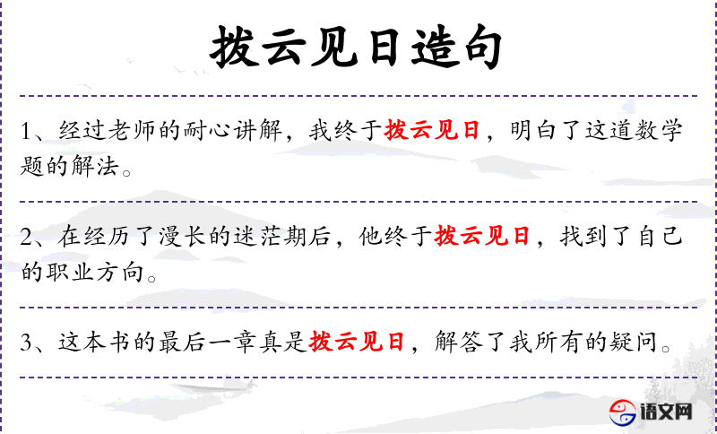 句子:“在经历了多次失败后,她终于拨云见日,找到了成功的秘诀。”