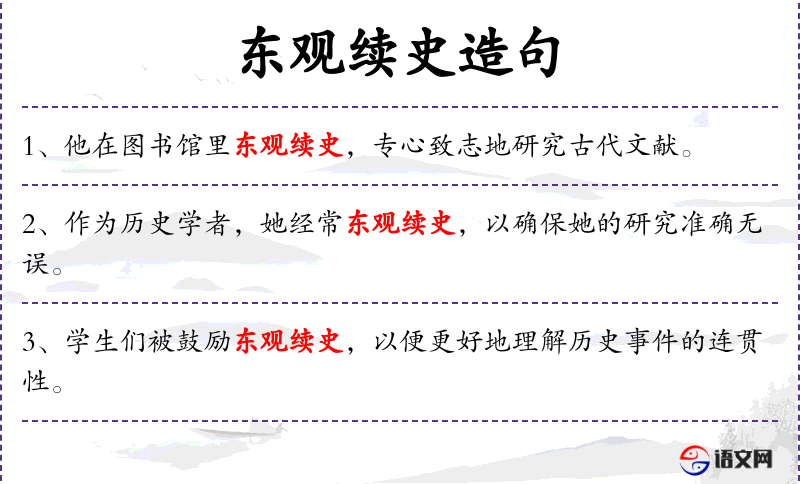 - 可能的文化背景:东观续史可能指的是一种特定的历史研究方法或文献,这可能与**历史研究传统有关。