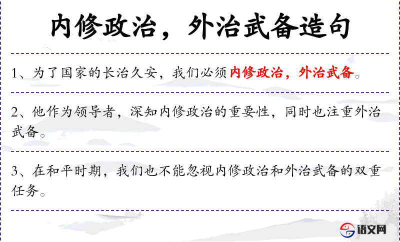 • 重点单词:internal political cultivation(内修政治)、external military preparedness(外治武备)