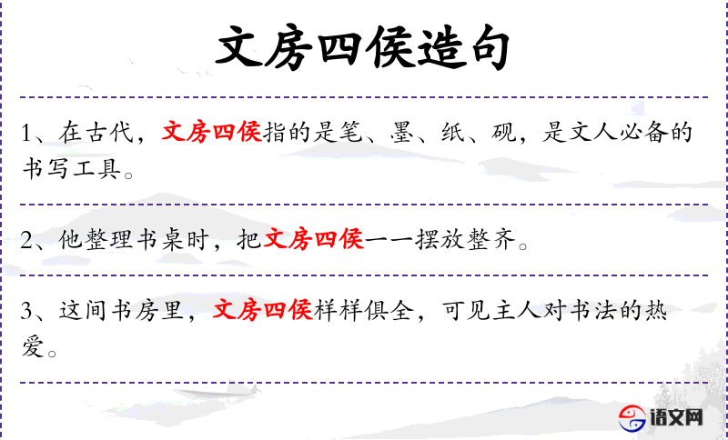 - 宾语:文房四侯的正确使用方法