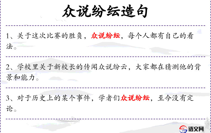 - 宾语:人们对未来充满了众说纷纭的猜测