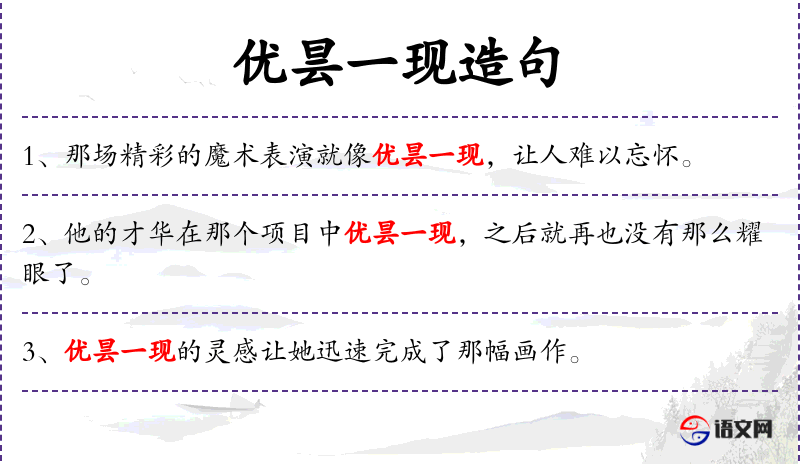 - 了解相关的成语、典故或历史背景,如“昙花一现”,可以加深对句子含义的理解。
