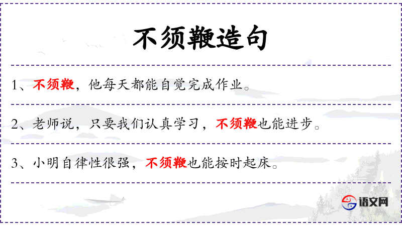 1. 【不须鞭】 - 传说一种用马见愁兽皮制的马鞭。