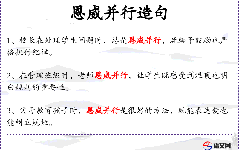 - 恩威并行:指同时使用恩惠和威严来管理,既有温情也有严格。