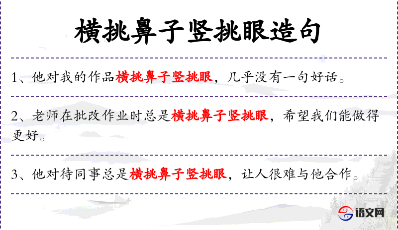 3. 【横挑鼻子竖挑眼】 - 比喻百般挑剔。