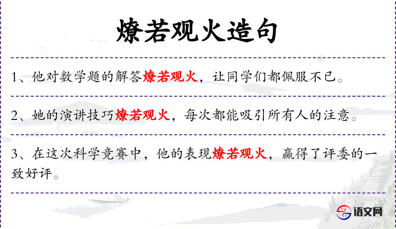 1. 【燎若观火】 - 指事理清楚明白,如看火一般。