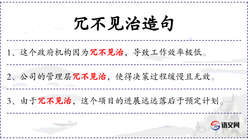 - 冗不见治:形容管理层人员过多,但管理效率低下,无法有效治理。