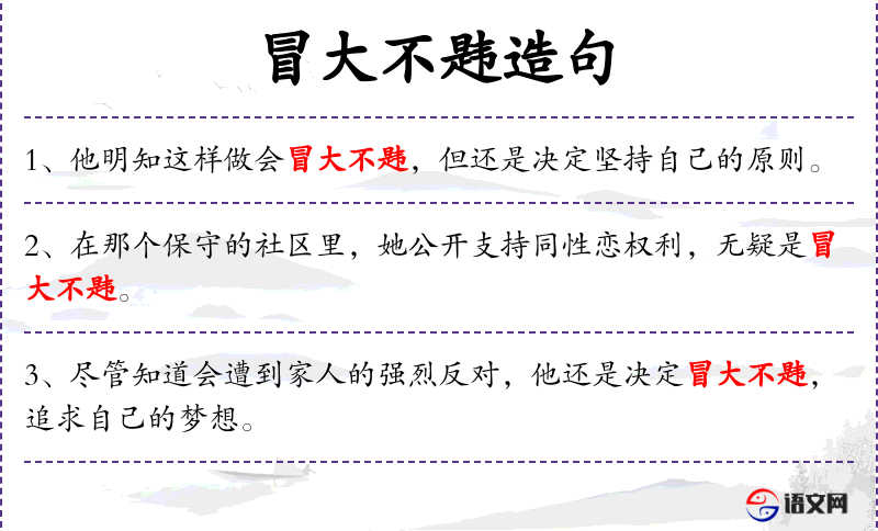 - 冒大不韪:表示不顾反对或风险,相当于英语的“defy great risk”。