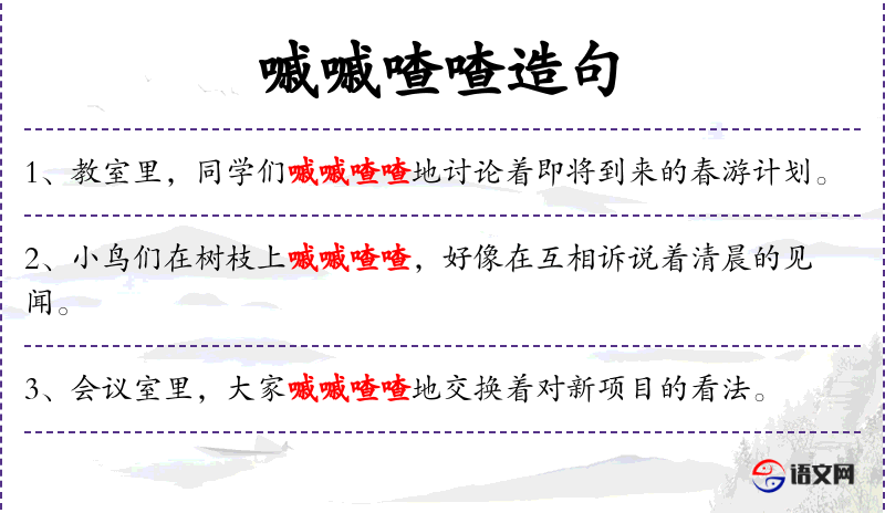 - 嘁嘁喳喳:叽叽喳喳、窃窃私语