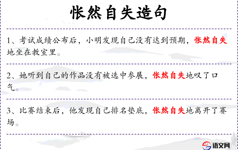 句子在实际交流中可能用于描述某人在比赛或竞争中的失败经历。语气的变化可以通过调整形容词(如“怅然自失”)来体现,表达更强烈的情感。