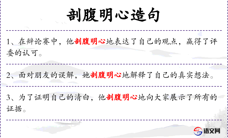成语典故:“剖腹明心”源自古代的忠诚和坦诚的象征,常用于形容极度真诚和坦率的表达。