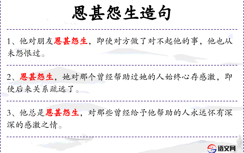 - 恩甚怨生:这个成语反映了**人际关系中的一种传统观念,即给予恩惠的同时,也要注意避免产生怨恨。