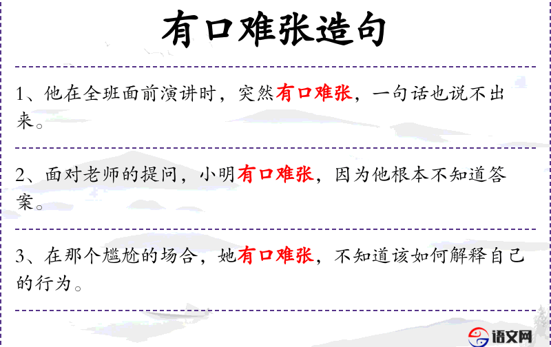 3. 【有口难张】 有话不便开口说或不敢说。