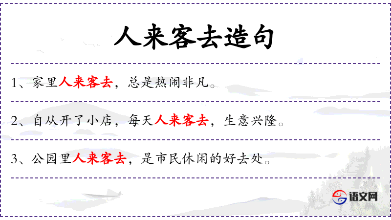 1. 【人来客去】 指礼节性的应酬往来。也指来往客人很多。