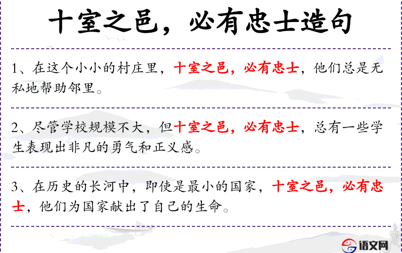 - 成语:“十室之邑,必有忠士”可以看作是一个简化的成语,强调忠诚的重要性。