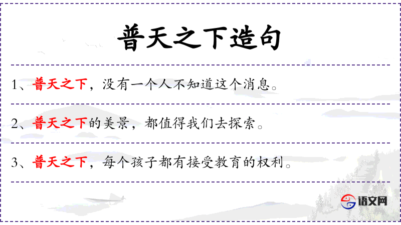 2. 【普天之下】 - 指整个天下;遍天下。