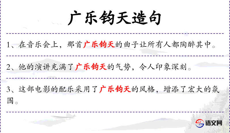 - 广乐钧天:这是一个成语,形容音乐或表演非常宏大、壮观。
