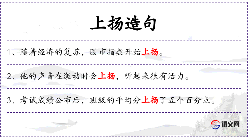 1. 【上扬】 (数量、价格等)上升:收视率~|租金~。