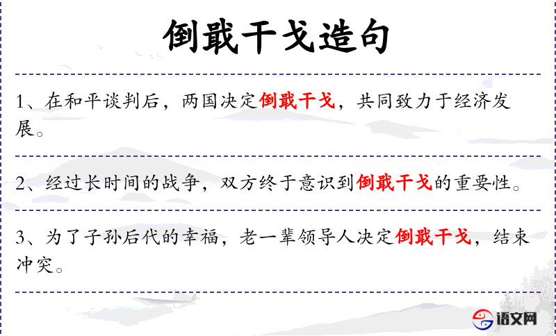 - 宾语:倒戢干戈,恢复友好关系