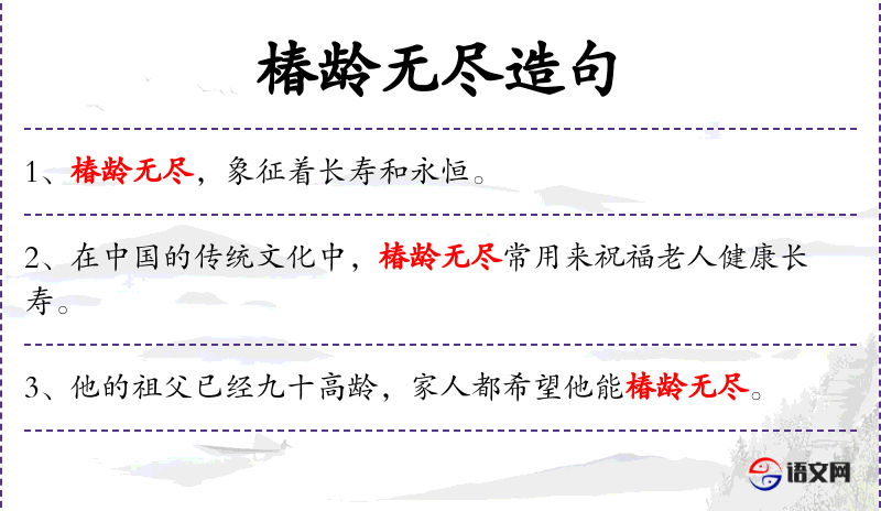 3. 【椿龄无尽】 椿:古代传说有大椿树,寿命很长。像椿树一样长寿。常用做祝人长寿之词。