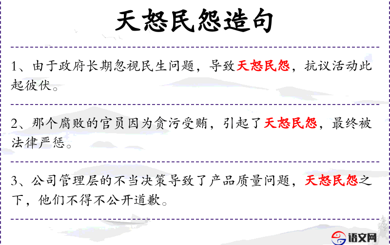 - 天怒民怨:形容民众的愤怒和不满情绪。