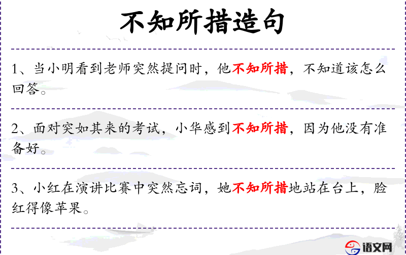 - 不知所措:成语,表示不知道该怎么办,感到困惑。